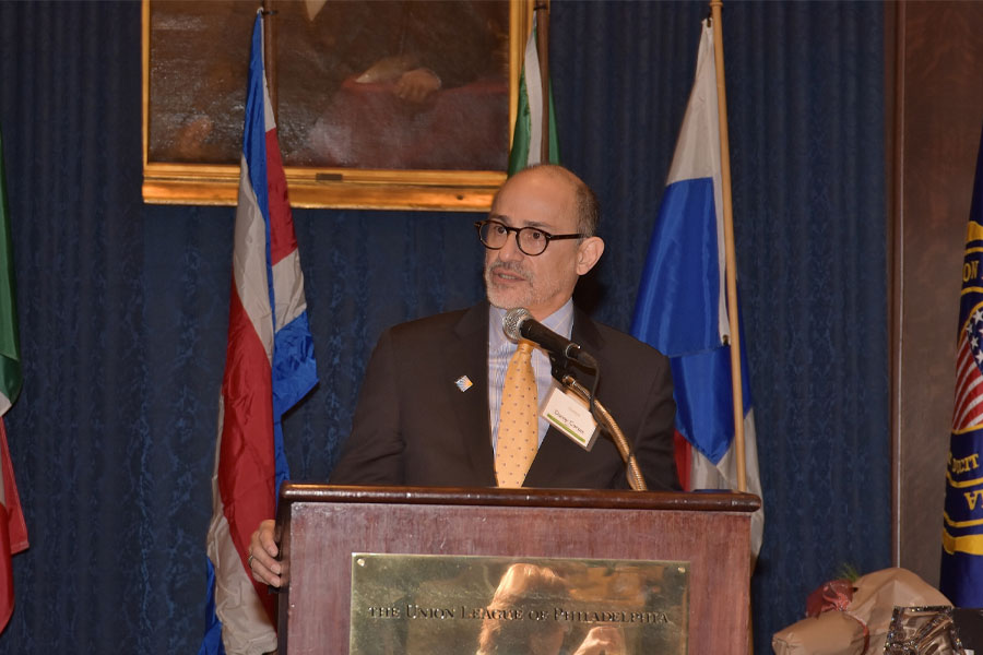 Recordó que la conexión de Filadelfia con América Latina y el Caribe es histórica y sólida con personajes como Simón Bolívar y Francisco de Miranda que lucharon por la independencia de América Latina, y que se inspiraron en los ideales expresados en la Convención Constitucional. Además, destacó que el puerto de Filadelfia maneja una gran cantidad de carga agrícola que se origina en Chile, Perú y otros lugares.