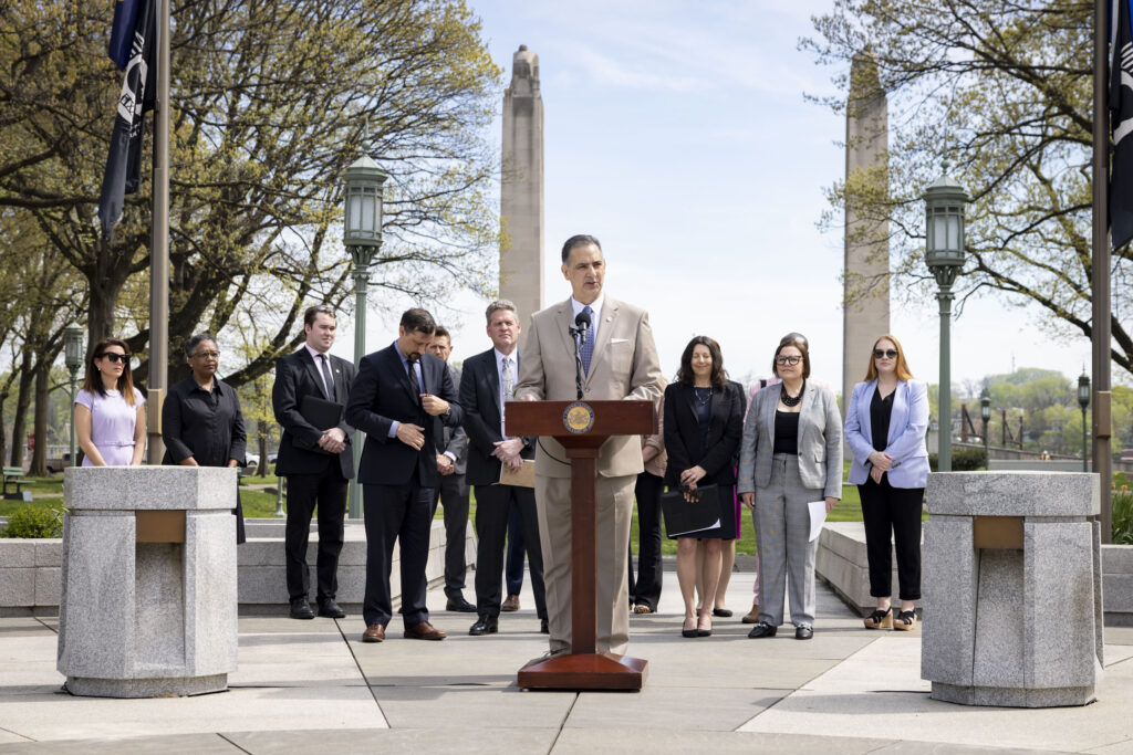 The Pennsylvania Department of Environmental Protection (DEP) Acting Secretary Rich Negrin joined Environmental Protection Agency (EPA) Region 3 Administrator Adam Ortiz, PENNVEST Chairman Dr. Brian Regli, and local government partners to celebrate Earth Month and highlight the partnership between federal, state, and local governments to fight climate change, in Harrisburg, PA on April 14, 2023T.
