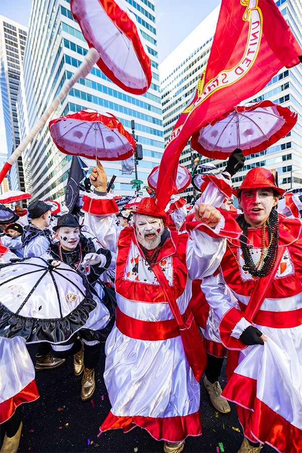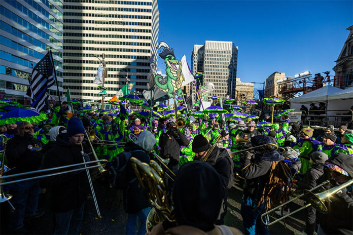 It’s the best time of the year for us, and it is so easy to ride the El downtown to see the Mummers,” said Edgardo Melendez of Kensington, who watched the parade with wife, Yanitza, and son, Michael. “Each year, I think about our family joining a Mummers Club and starting our own tradition.” The roots of the Mummers tradition can be traced to festive European masquerades and ancient Roman celebrations, as well as British mumming, a historic folk tradition of masked people performing short, humorous plays. Mummering was brought to the Delaware Valley by waves of immigrants before the turn of the 20th century, and neighborhood mummering gatherings eventually evolved into an organized, judged parade. The first formal, city-sanctioned parade took place on January 1, 1901, making it the oldest continuously operating folk parade in the United States.