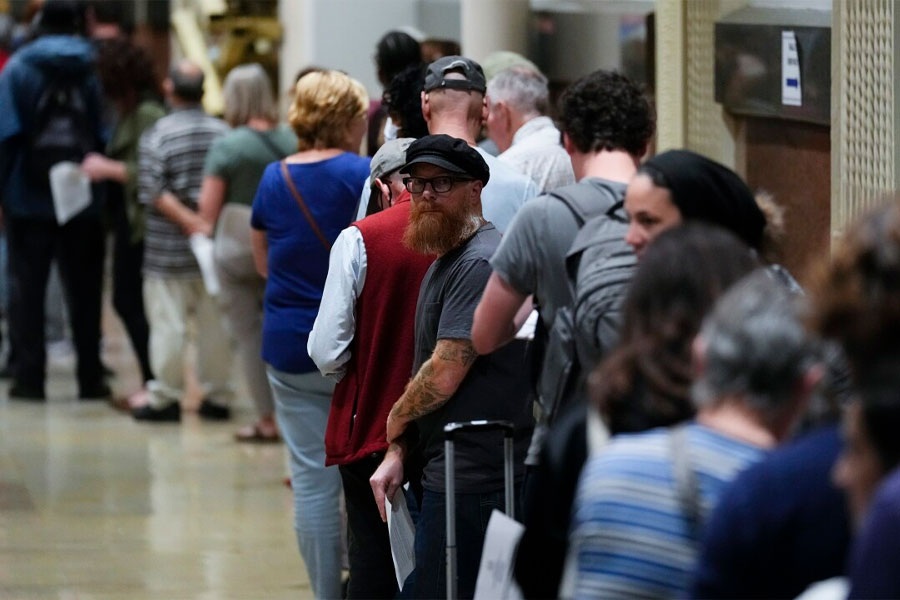 Voters wait in line to make a correction to their ballots for the midterm elections at City Hall in Philadelphia, Monday, Nov. 7, 2022. (Photo: AP/Matt Rourke)