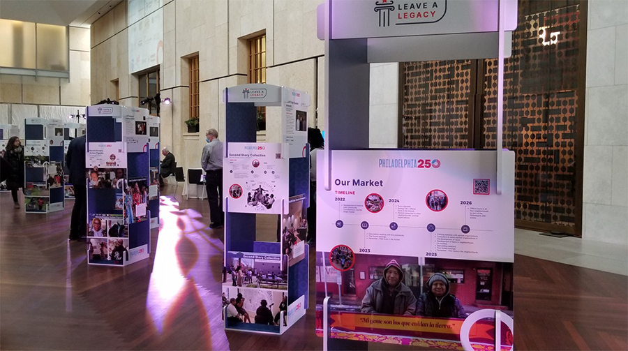 During the informal presentation, the representatives of the eleven “Leave a Legacy” finalists’ community-lead programs selected by PHILADELPHIA250, had an opportunity to expose to the audience the vision of their projects. In the Annenberg Court, the assistants found a visual board with a brief information of Cities of Inclusion, a project of the Special Olympics Pennsylvania; Healthtribe Student Network, The Miyanda Project, Neighborhood Bike Hubs, Our Market, The Philadelphia Music Museum, Read Feather’s Legacy: We are Still Here; Revolutionary Action Figures, a project of Smith Memorial Playground and Playhouse; Second Story Collective, a part of the Writers Room at Drexel University; The West Philly Bunnyhop, and Prosper Park.