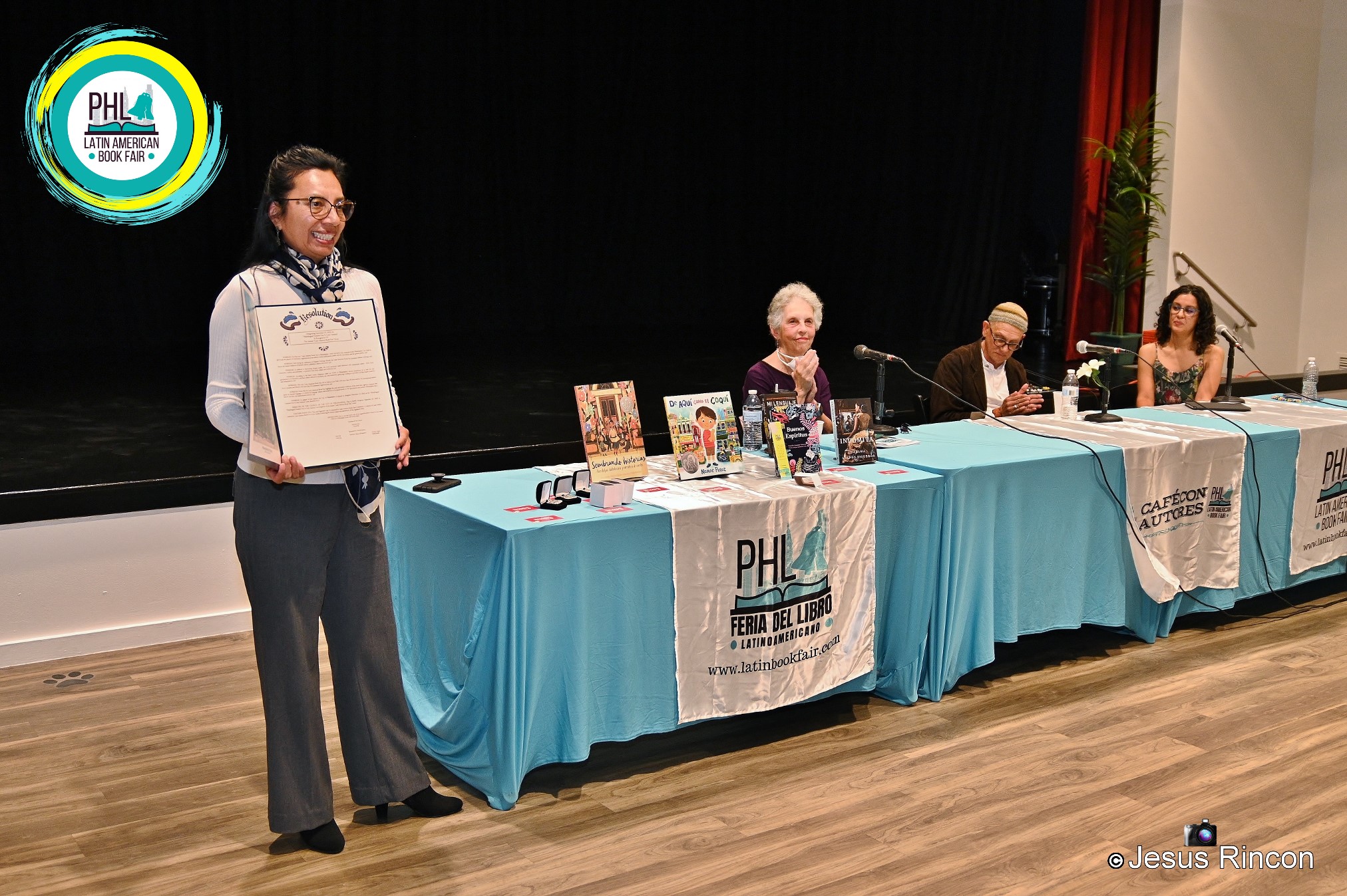 Soñar implica un compromiso de constante trabajo para lograr objetivos. Cada paso que el equipo logra es un beneficio para nuestra comunidad. Este año el concejal David Oh, entregó la histórica resolución de parte de la Ciudad, al Día de la Libertad Multilingüe/ Multilingual Freedom Day, a los miembros del comité de la feria, como un simbólico reconocimiento del significativo aporte de las diversas culturas y lenguas que conviven en la ciudad del Amor Fraternal. ¡Este es un logro muy importante para la comunidad! Después de la ceremonia protocolar, se procedió a entregar los premios inaugurales Latin American Book Fair a tres líderes comunitarios: Dra. Carmen Febo-San Miguel (Life Achievement Award), Carlos José Pérez Sámano (Escritor del Año) y al Dr. de emergencia José Torradas (Héroe Comunitario), por sus contribuciones —en cada una de sus áreas—, al servicio de la colectividad. Ana Onana, miembro del comité organizador, entregó el premio sorpresa llamado “Amigo” al concejal David Oh por su apoyo incondicional a este proyecto.