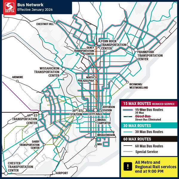 Paralelamente, SEPTA ha lanzado su propuesta final del plan Bus Revolution, un rediseño integral de su red de autobuses que busca: