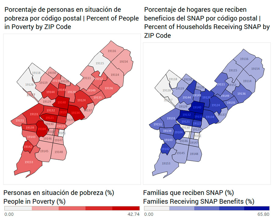 Fuentes: USAGov, Ciudad de Filadelfia, Calculadora de Beneficios SNAP.