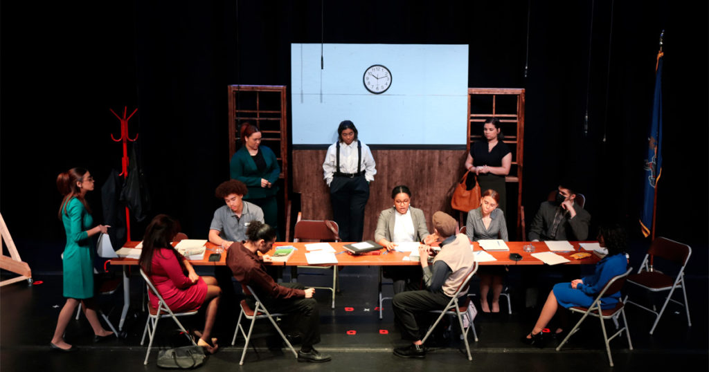 El Club de Teatro de la Escuela Secundaria Esperanza Academy presentó “Twelve Angry Jurors” la noche del viernes 27 de enero en el Teatro Esperanza. Para muchos de los estudiantes, era la primera vez que actuaban, pero eso pasó desapercibido y ofrecieron una actuación poderosa.
