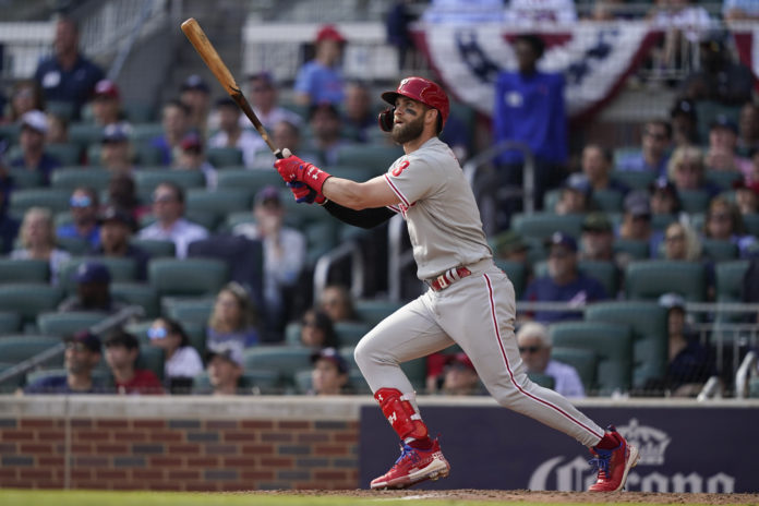 Harper had to scramble back to third on Alec Bohm’s groundout to first, and Brandon Marsh struck out swinging on a four-seamer that clocked in at 96 mph.