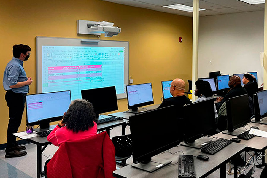 También entendemos que el costo de las clases de computación puede ser una barrera, por eso nuestro programa ofrece clases gratuitas para estudiantes de todos los niveles. Creemos en encontrarnos con las personas en el punto donde se encuentran en su camino digital, por eso ofrecemos cursos para principiantes diseñados para introducir a los estudiantes en los conceptos básicos de la computación. Algunas personas nunca han usado una computadora, así que el modelo de clases grupales crea una comunidad de aprendizaje donde se comparten experiencias y se brinda apoyo mutuo en un ambiente cómodo. Además, las clases de Hope Digital Skills se ofrecen en inglés y español para superar la barrera del idioma.