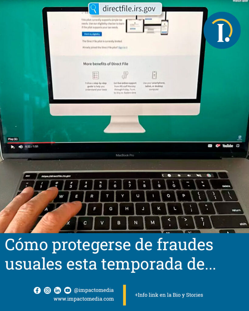 Durante todo el año, los estafadores buscan cómo engañar a la gente para que les proporcione dinero o información personal. Hay varios fraudes comunes en la temporada de declaraciones fiscales, por lo que es necesario estar atentos ante cualquier señal de alarma, dijo Amy Nofziger, directora de apoyo a las víctimas de la Red de Vigilancia de Fraudes de la AARP, una asociación no lucrativa que aboga por los derechos de los jubilados.